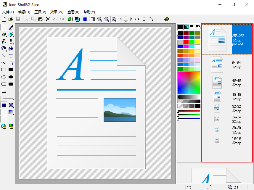 一个图标文件.ico 打开后,可能包含多种不同尺寸的图标。
