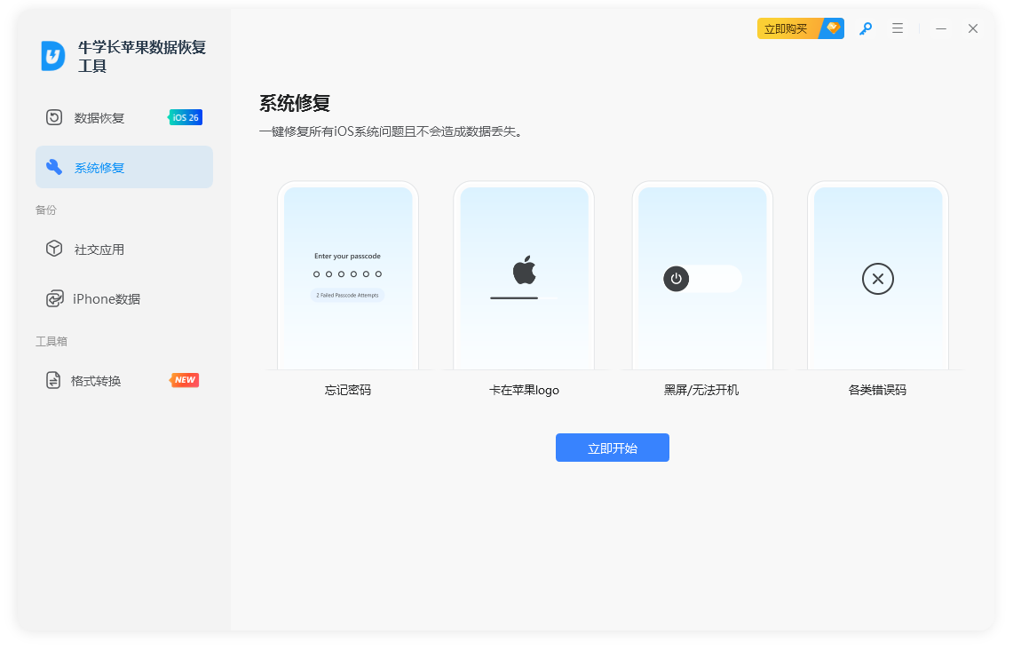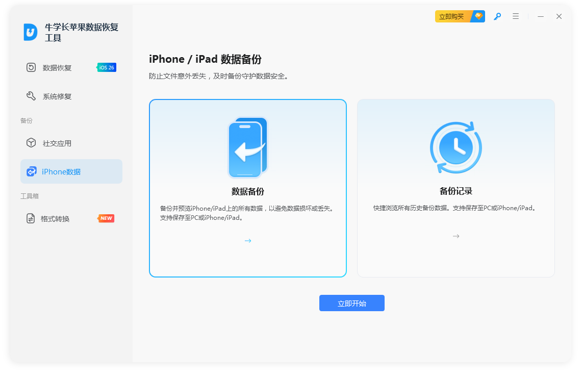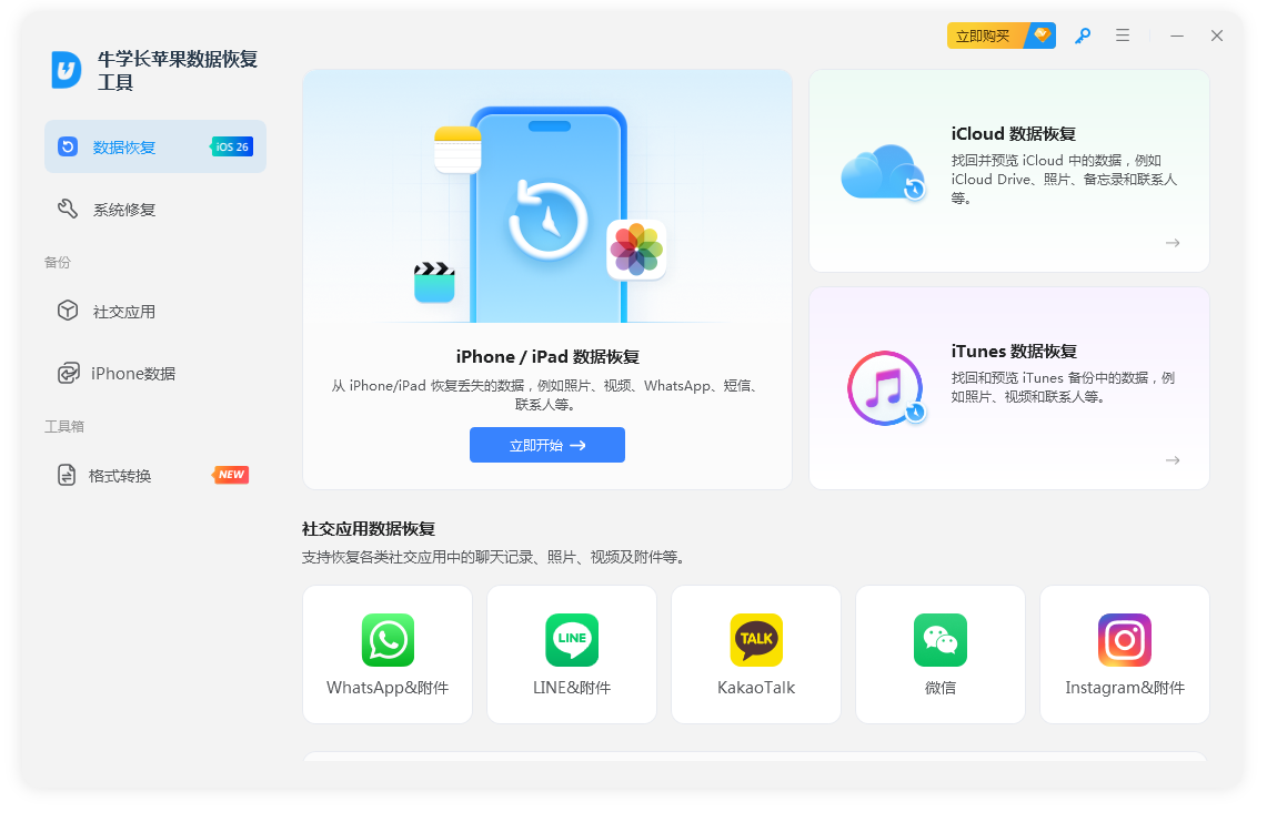 牛学长苹果数据恢复工具,专业的 iPhone/iPad/iPod 数据恢复工具。