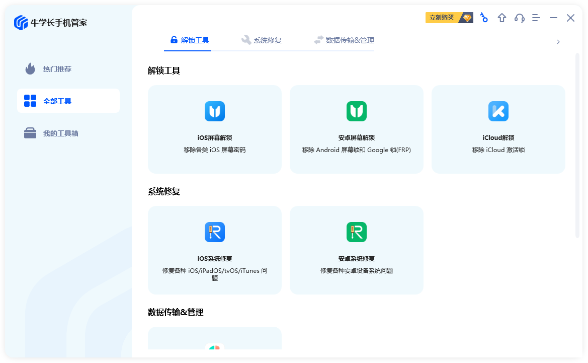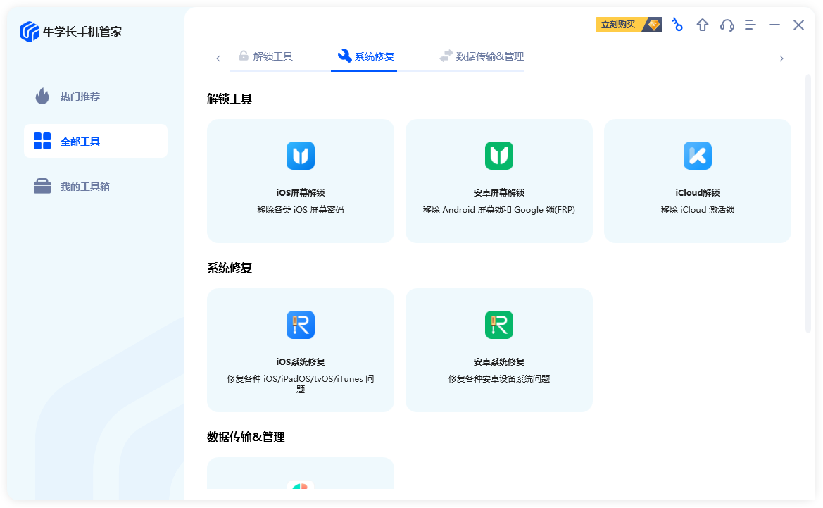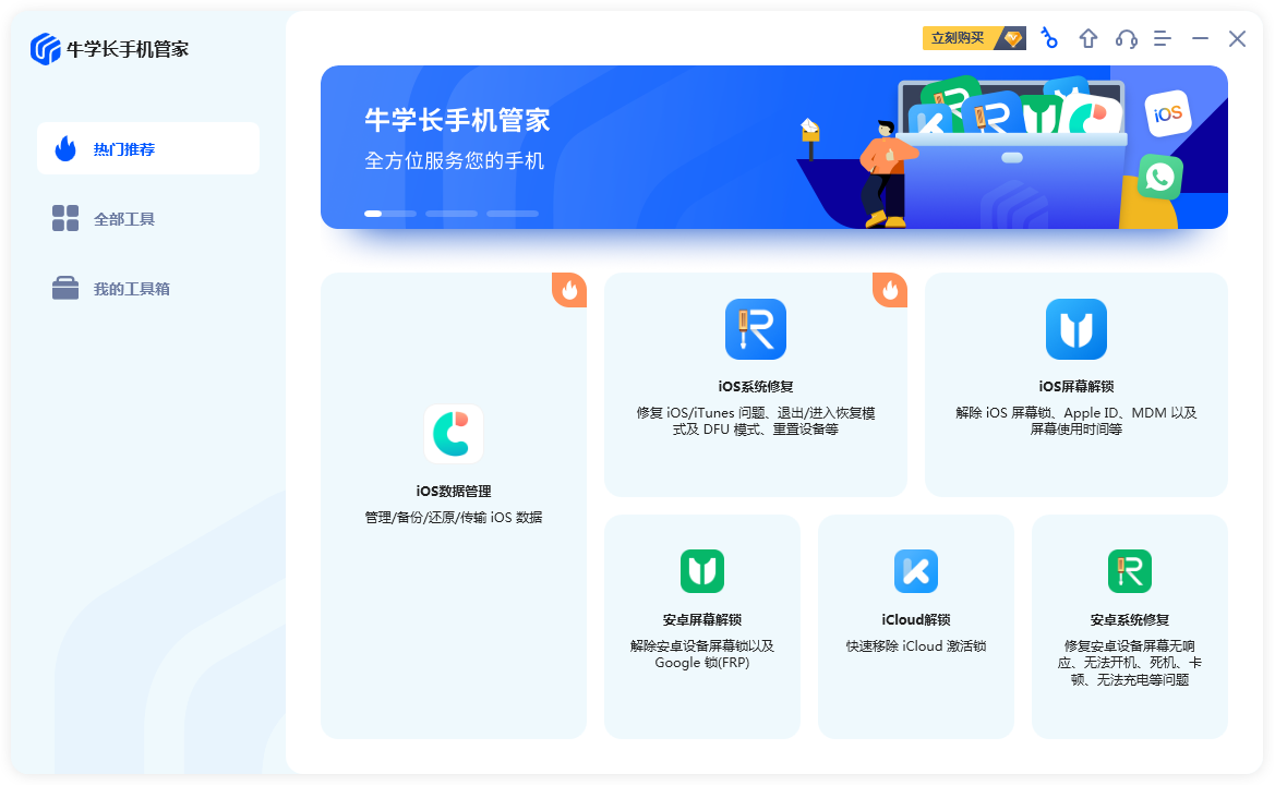 牛学长手机管家,移动设备全方位解决方案,轻松修复 iOS/Android 系统、屏幕解锁和数据管理!