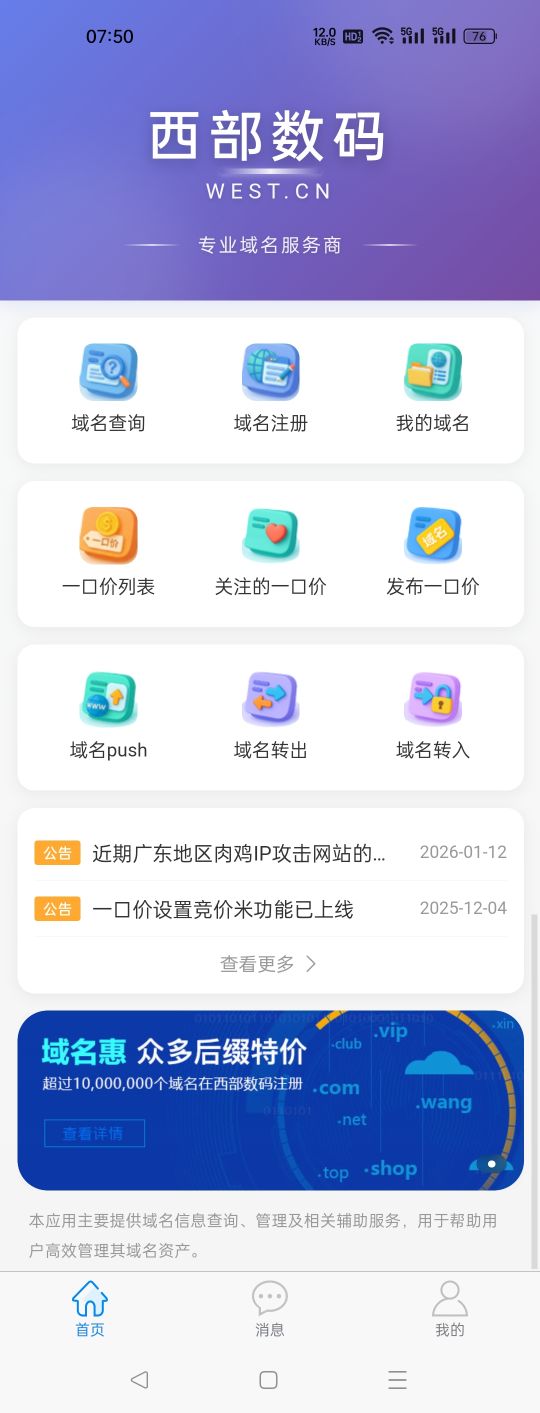 西部数码开发的一款用于域名注册,交易,管理的手机应用。