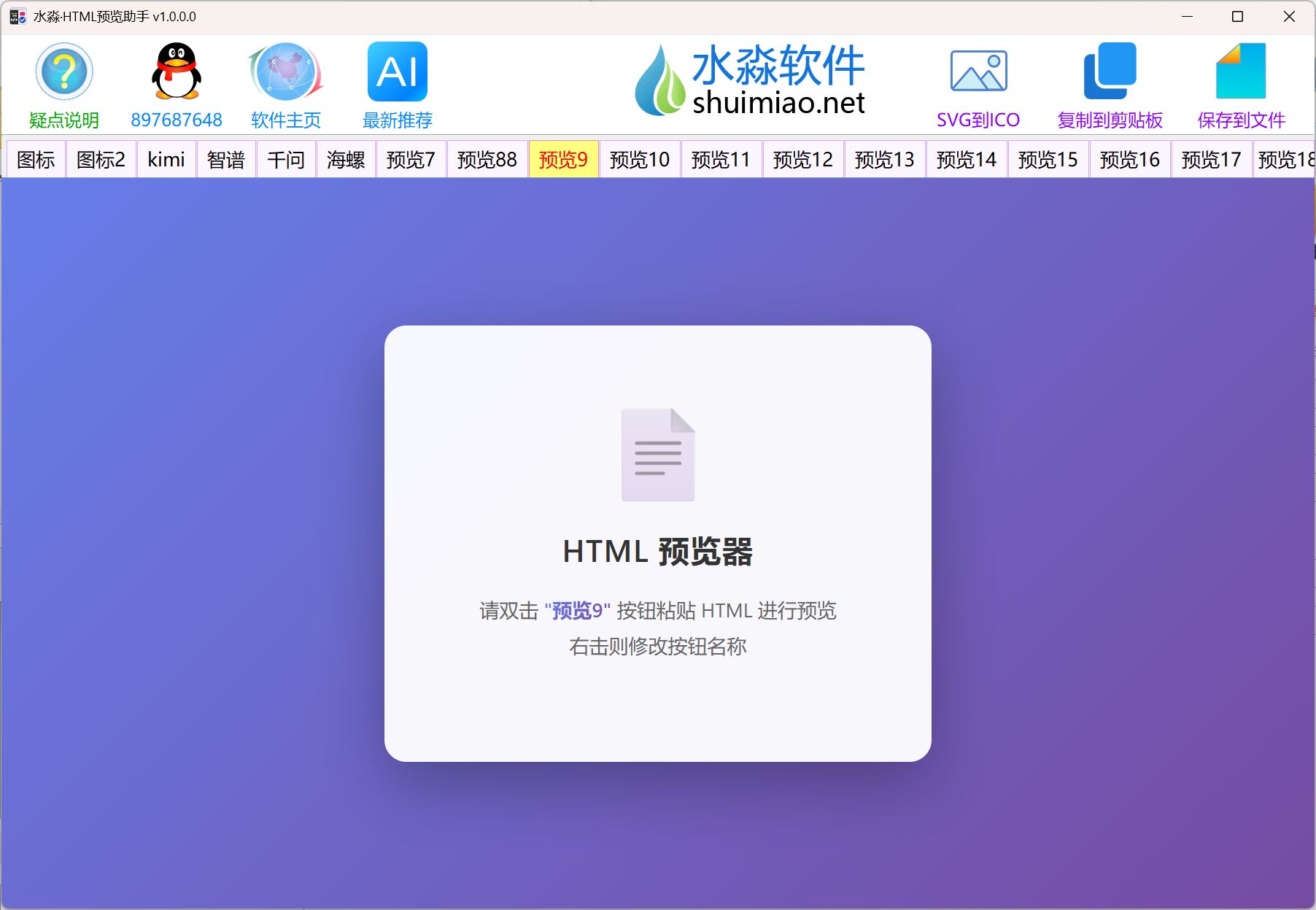 一键预览 HTML 效果的便捷工具,支持30个预览页,支持 SVG 转 ICO 图标。