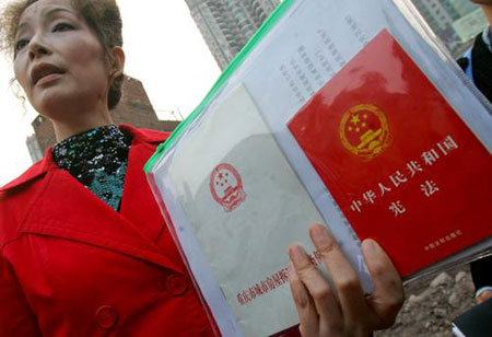 “史上最牛钉子户”面临搬迁最后时限。吴苹露出她的法宝一本宪法