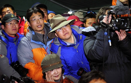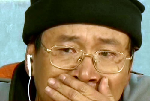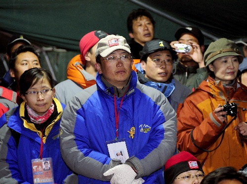 北京奥运火炬接力珠峰传递登山队新闻发言人张志坚看到登顶成功后激动得流下眼泪