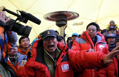 北京奥运会火炬在珠峰峰顶点燃[图] 三
