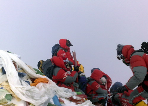 北京奥运会火炬在珠峰峰顶点燃[图] 一