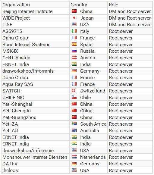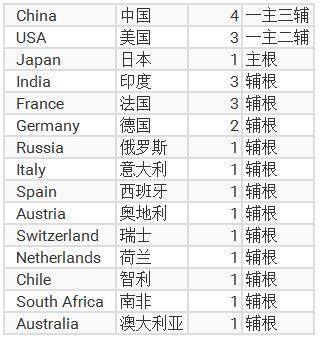 其中中国部署了4台根服务器,包括一台主根服务器,在全世界现有3台主根服务器中占有一席。