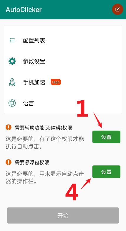 二、自动点击器,安装完成按以下步骤设置一下就可以正常使用了: