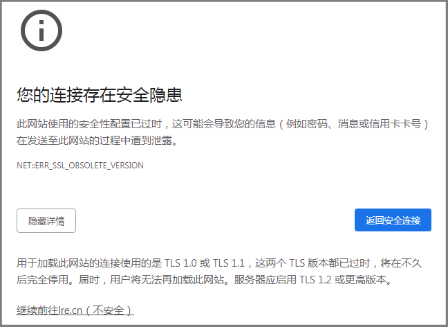 注:对于旧版本的 TLS,特别是 SSL 有已知的漏洞。最好的做法是联系网站所有者并要求他们更新其 SSL/TLS 实施以仅支持现代协议版本。
