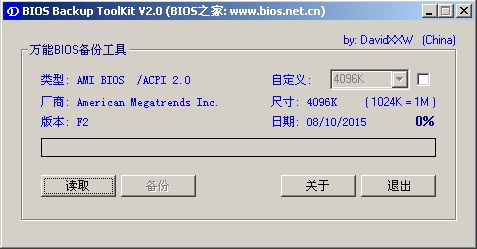 万能 BIOS 备份工具。本工具仅用于试验环境的技术研究以及漏洞的验证。不涉及任何有版权的内容,仅供技术交流研究之用。请使用者在24小时内删除,由此引发的纠纷,一切后果自负!