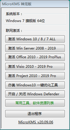 MicroKMS V20.09.06 神龙版(Windows 系统 & Office 软件激活程序)