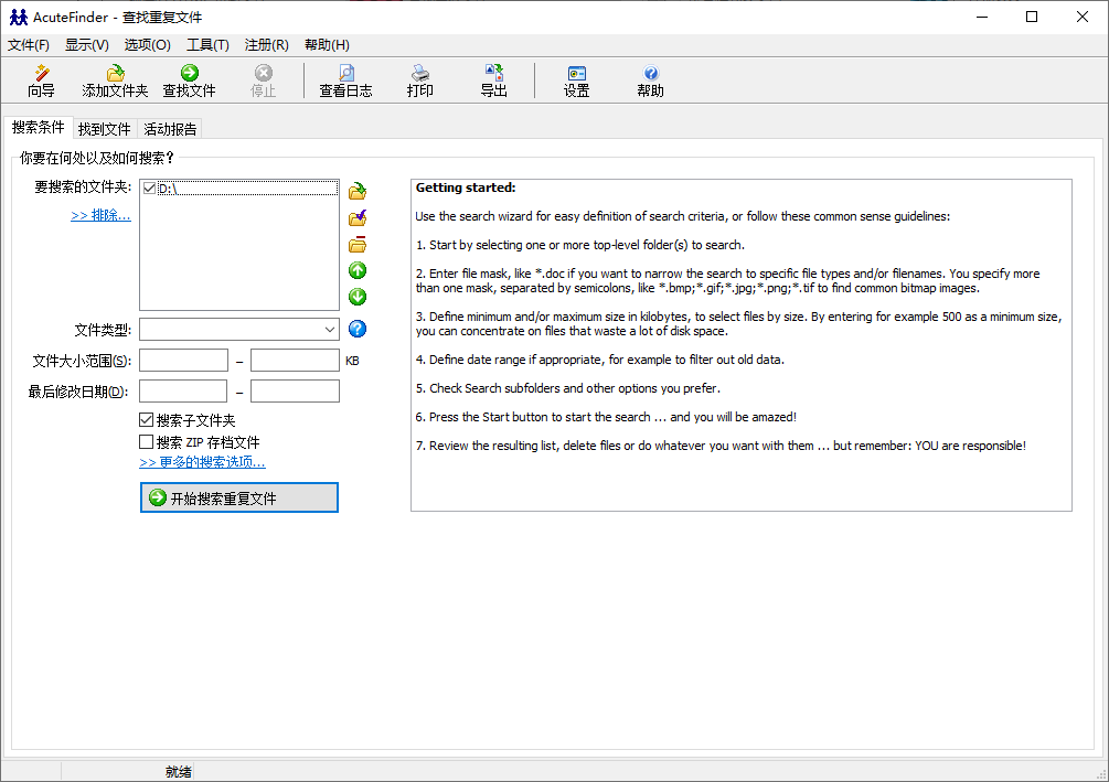 AcuteFinder 不但根据能文件名,大小或时间戳来判断,而且尽可能搜索其它重复项并且可以计算它们的校验,这这样一来,能保证查找真正相同的文件,你也可以放心的删除多余的副本。