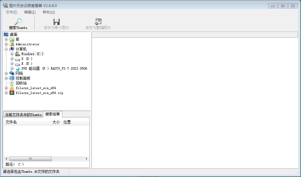 “图片历史记录查看器”能做什么?本软件能够打开、搜索各个文件夹中的 Thumbs.db 文件,查看里面包含的图片信息。