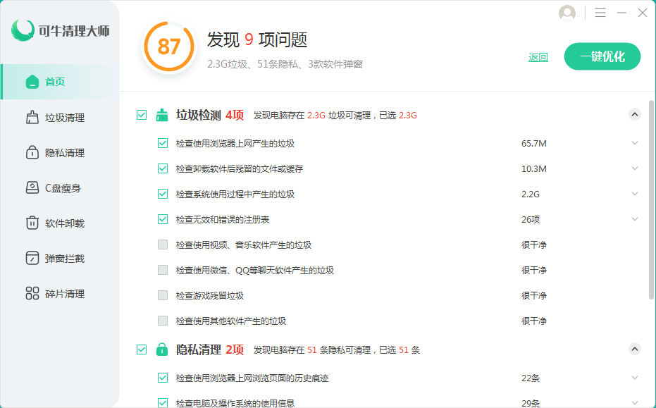 一款功能很出色的垃圾清理功能软件,为我们带来的不仅仅是酷炫的界面,可以对c盘瘦身,一键卸载多余软件,极致的清理效果等。