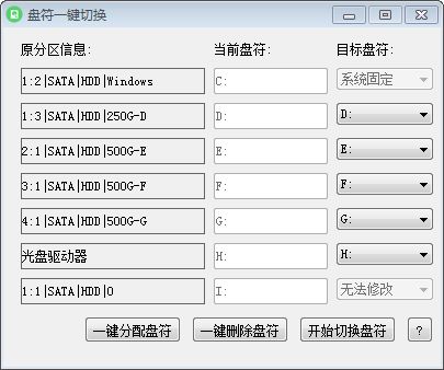 Windows 系统的磁盘分区盘符修改,一键添加盘符,一键删除盘符,盘符切换。