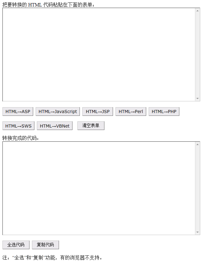 JavaScript:HTML 代码转换为 ASP/JavaScript/JSP/Perl/PHP/SWS/VBNet