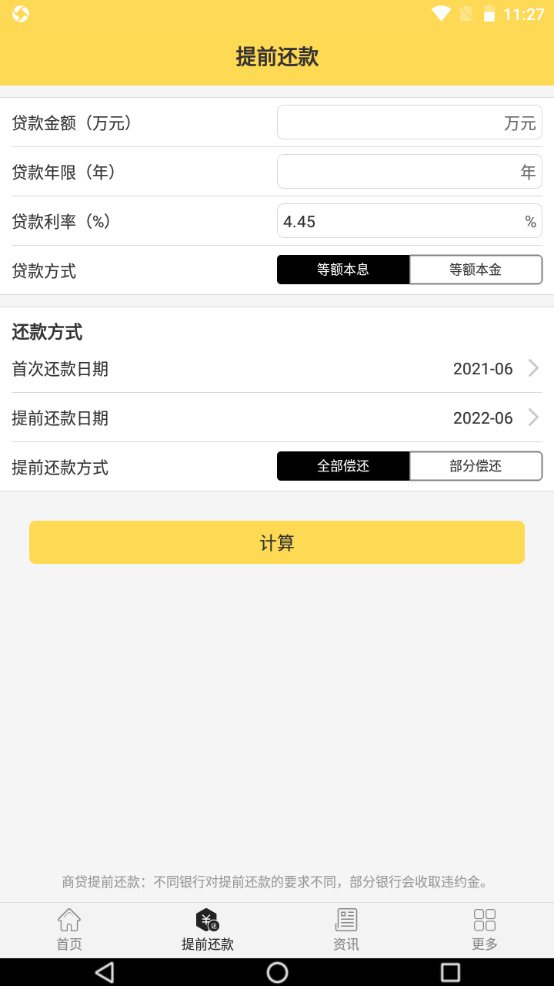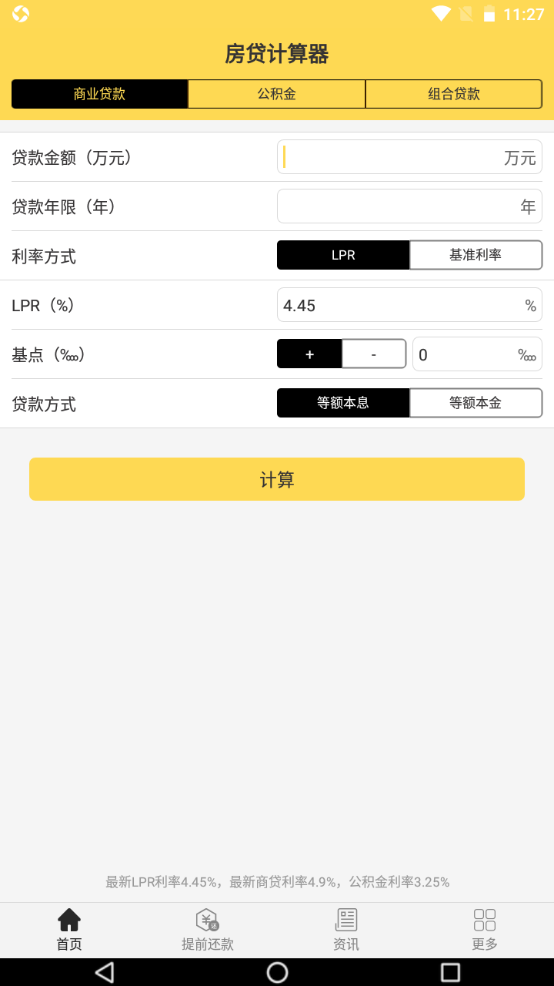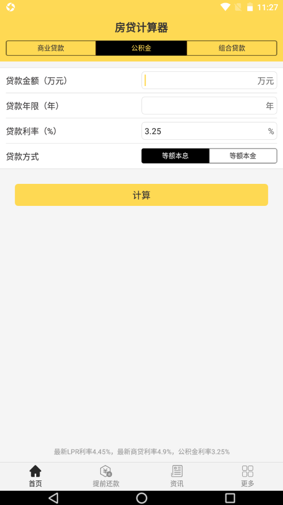 一款用于计算房贷的手机 APP,商业贷款、公积金、组合贷款,提前还款计算,房贷年利率表,房贷知识,银行电话。