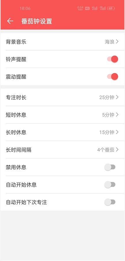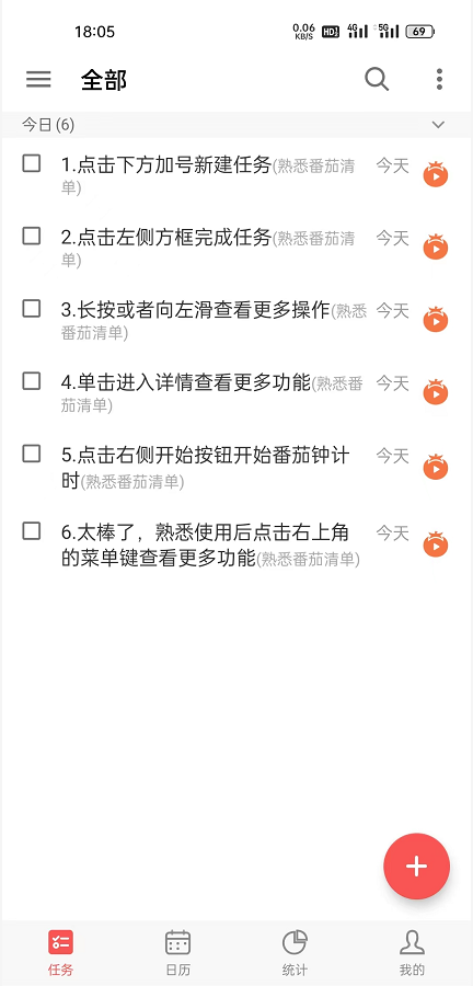 打开软件后,选择一个待完成的任务,将番茄时间设为25分钟,开始计时后不允许做任何与该任务无关的事,直到番茄时钟响起。每结束一个番茄时间,可以短暂休息5分钟,再进入下一个番茄时间,每次认真过完4个番茄时间可以多休息一会儿。