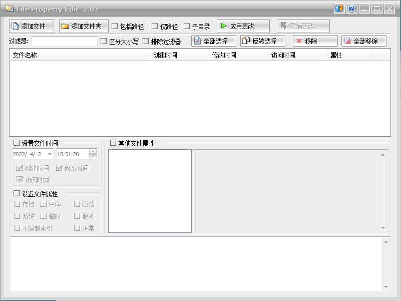 一款批量修改文件或目录的属性和摘要属性。强大的文件和文件夹浏览功能加上拖放支持,你可以很容易的添加一组文件或文件夹到 "文件属性编辑",然后更改它们的 "创建时间","修改时间","访问时间",和其他文件属性和摘要属性。你只需点击一次撤消就可以回到原始值。