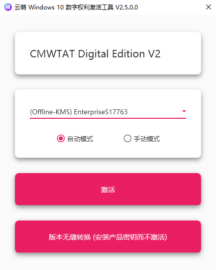 云萌 Windows 10 数字权利激活工具 V2.5.0.0