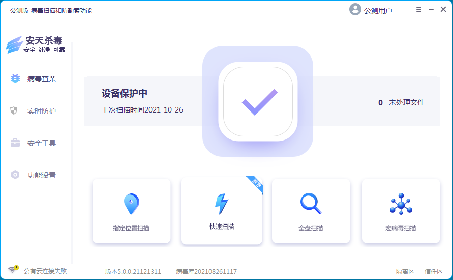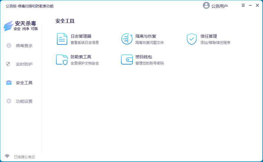 一款安天公司出品的,为个人和家庭终端提供安全防护的安全软件,目前在模块级公开测试阶段,支持 Windows 7/8/10 系统试用。如需了解面向政企客户建立端点统一管理能力的安全需求,特别是针对对于服务器、虚拟化、容器等场景的安全需求。