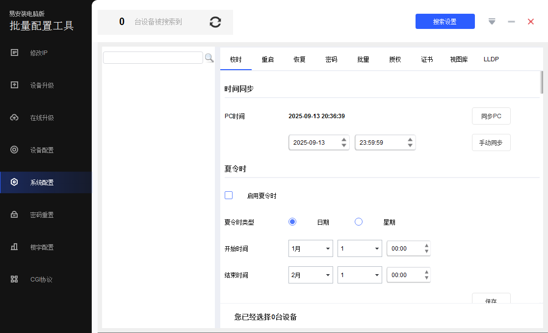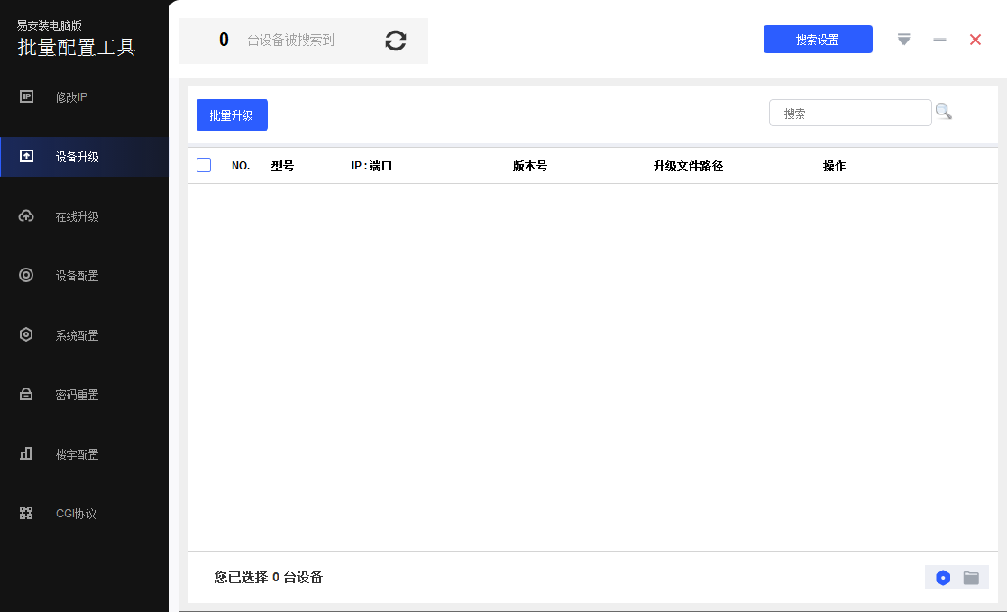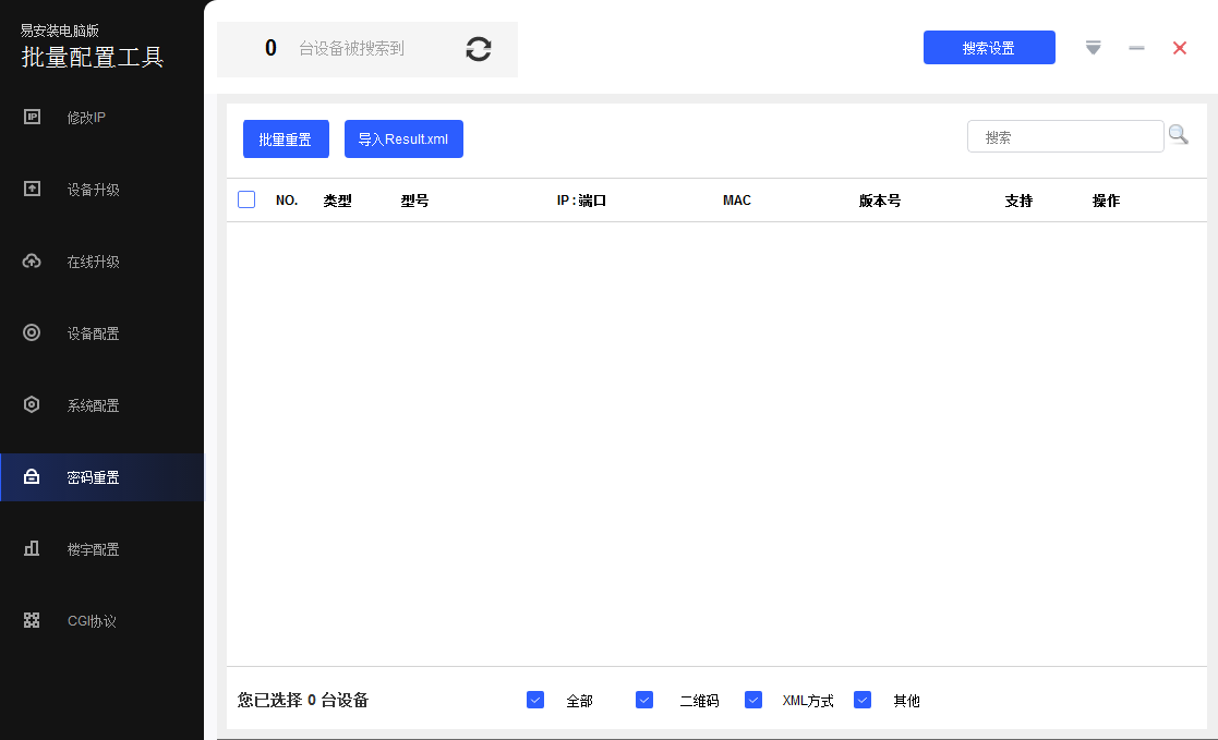 易安装 电脑版:该工具主要对支持大华二、三代协议的大华设备进行配置。支持设备的信息查看、单个/批量修改IP、详细参数配置、校时、重启、恢复默认、修改密码、设备升级、楼宇对讲配置、密码重置、CGI 配置等功能。
