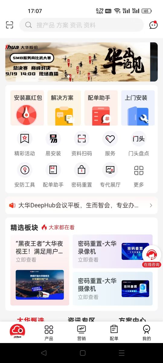 大华云商:一款以大华分销类产品营销与相关服务为宗旨,提供客户注册、产品选型、配单、采购、技术指导、解决方案指导、订单状态跟踪、售后服务等全面覆盖售前、售中、售后各环节的业务应用。