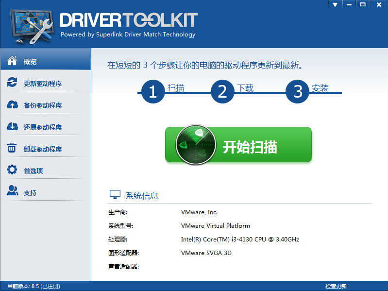 DriverToolkit 中文版是一个全功能于一身的驱动程序管理工具。 DriverToolkit 点击几下就可以更新,备份,恢复和卸载驱动程序。如果你在电脑在无法找到相应的驱动情况下,你可以尝试使用 DriverToolkit 来更新安装你的驱动程序。