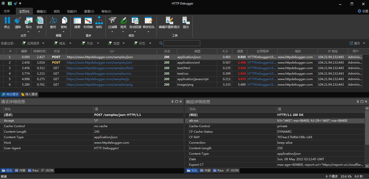 HTTP Debugger 是一个非常易于使用的 HTTP/HTTPS 抓包分析工具。抓包时不会更改浏览器的任何信息。可以显示来自任何浏览器与 JAVA/.NET 应用程序的 HTTP/HTTPS 流量。