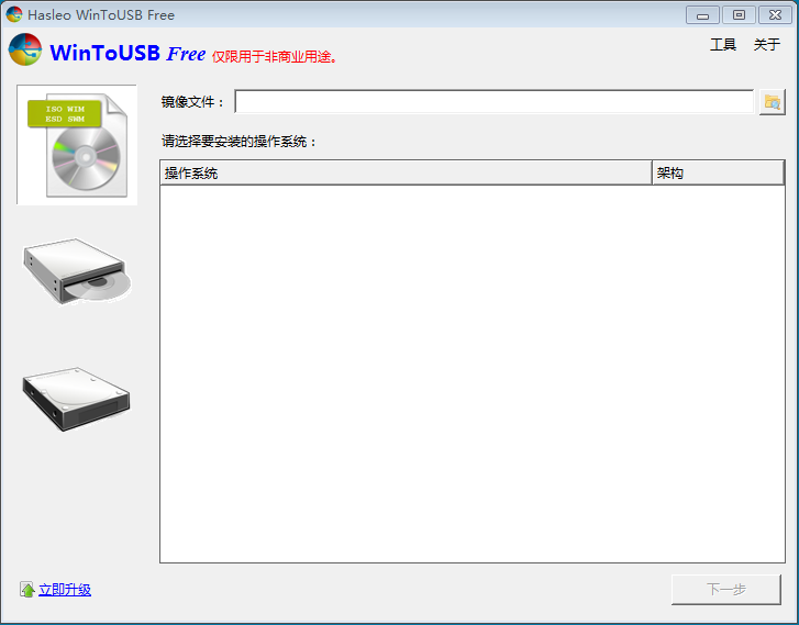 一款免费软件,可让您安装和运行 Windows USB 硬盘或 USB 闪存驱动器上的操作系统,采用作为安装源的 ISO 映像或 CD/DVD 驱动器。 WinToUSB 还支持创建可启动 WinPE 的 USB 驱动器,它可以帮助您的 WinPE 的内容传送到 USB 驱动器,使驱动器引导。