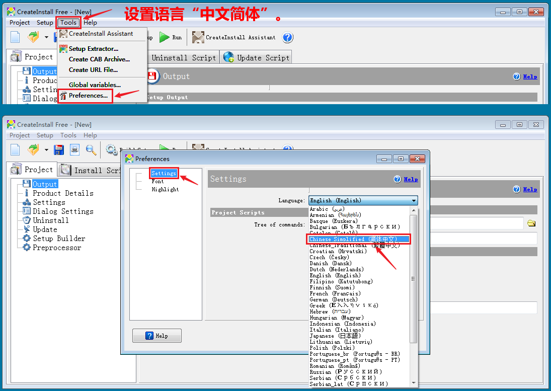安装过得是英文界面,安装完成运行软件再设置为“中文简体”。