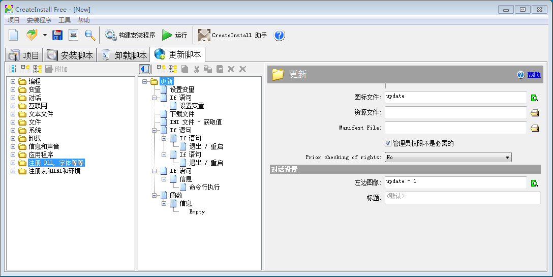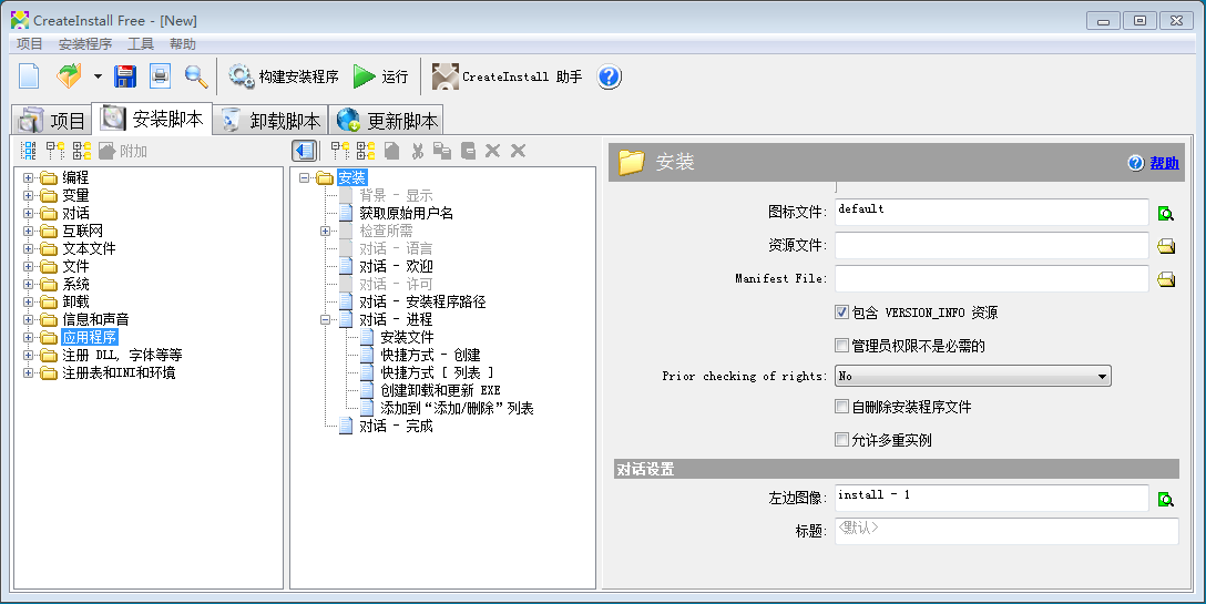 一款实用的安装包制作工具,CreateInstall Free 中文特别版是一个实用而且权威的安装程序制作软件,同时也是个文件分卷压缩打包程序(把一个大文件分割成制定大小的压缩包),不管是新手还是熟练的程序员,用它都能把自己的应用程序做成高质量的安装程序。CreateInstall Free 的核心是脚本语言,使得它所创建的安装程序具有更强的适应能力。