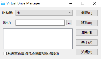 使用 Virtual Drives Manager 创建的虚拟驱动器将被保留甚至当您重新启动系统后,您还可以快速的删除它们不会丢失任何数据。