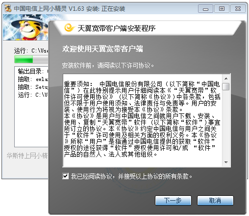 V1.63 安装程序包含安装确认,天翼宽带,天翼网盘。