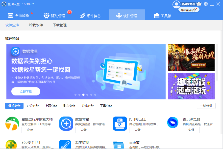 驱动人生 V8.16(驱动程序安装/备份,硬件检测,软件管家)