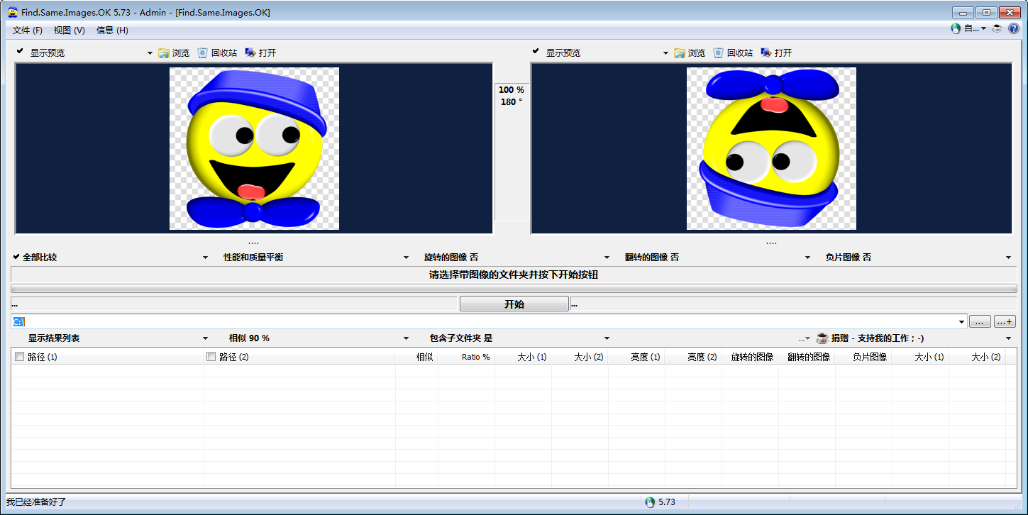 一款相同图片查找对比工具,能够帮助用户查找出文件夹里类似或相同的图片。该软件可以将您文件夹上类似或者是相同的图片找到,只要相似超过90%就可以将其找到,从而帮助您管理两个文件夹上的图片内容,其实这款软件与一般的重复查找软件类似,都是添加两个保存有图片的文件夹到软件上分析,但是本软件在查找到重复方面更加优秀,主要针对图片的尺寸、质量、旋转、翻转、负片图像等内容进行查找,并不是对名字相同的图片查找,主要目的就是让您找到质量相同的图片。