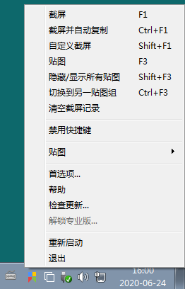 V2.10.8 Windows x86/x64:解压后运行 Snipaste.exe,程序运行后在托盘显示图标,单击图标即可开始截图,或者按一下默认的 F1 快捷键也可以开始截图。在托盘图标单击右键选择“首选项”打开程序设置窗口。