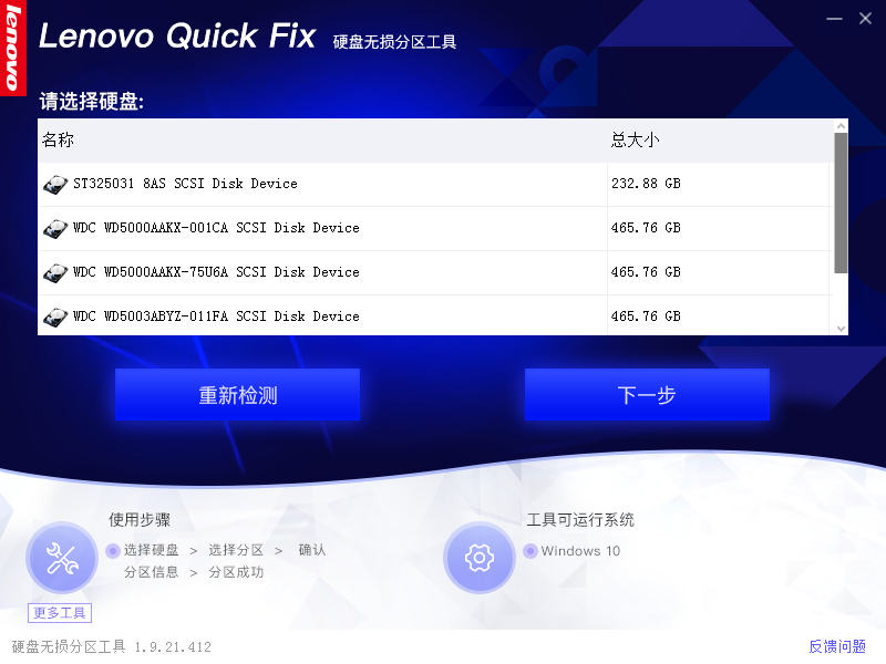 Lenovo Quick Fix - 硬盘无损分区工具 V1.9