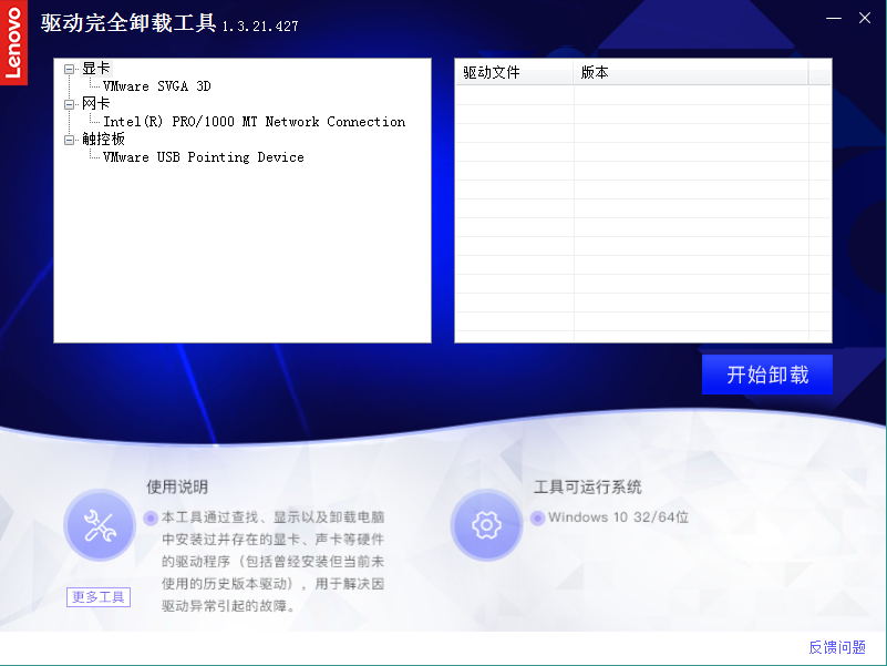 本工具可通过查找、显示以及卸载电脑中安装过并存在的显卡、声卡等硬件驱动程序(包括曾经安装但当前未使用的历史版本驱动),解决因驱动异常引起的故障。
