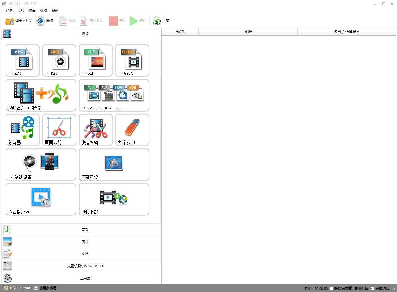 一款多功能的视频、音频、图片、文档文件转换工具。格式工厂功能强大,可以帮助用户简单快速的转换需要的视频文件格式。不仅如此,格式工厂软件操作简便,用户安装后就可以上手进行使用,为用户带来快速简便的使用体验。最重要的是格式工厂软件是免费的。