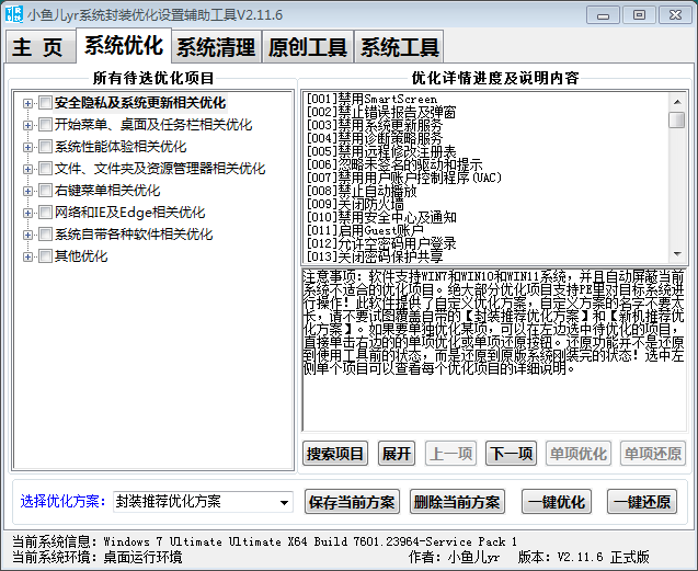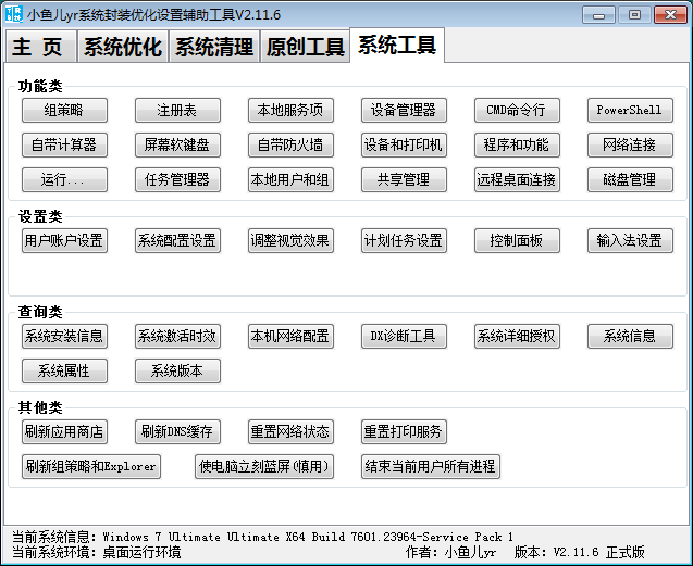 小鱼儿yr系统封装优化设置辅助工具 V2.11.8 正式版