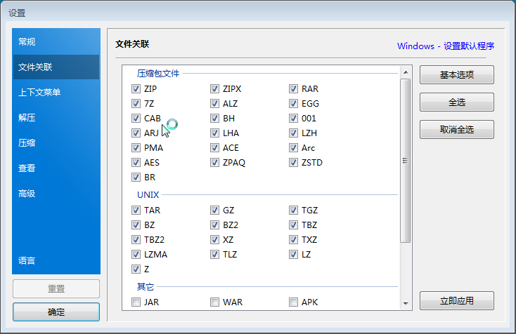 支持的格式: ZIP, 7Z(lzma2), ZIPX(xz), EXE(sfx), TAR, TGZ, LZH(lh7), ISO(joliet), GZ, XZ;