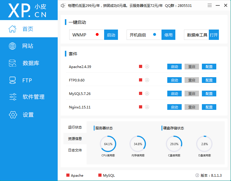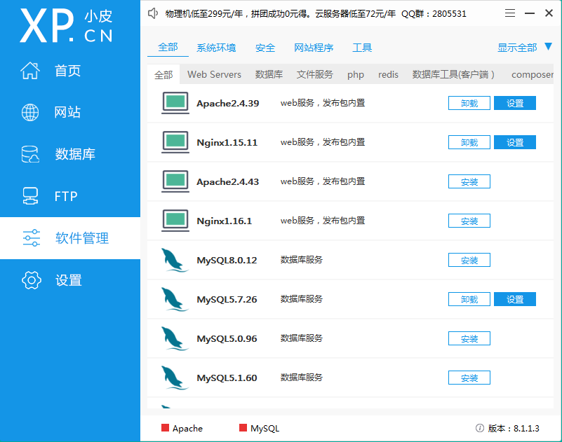 小皮面板 PHPStudy Windows 客户端,Linux 面板 V8.1