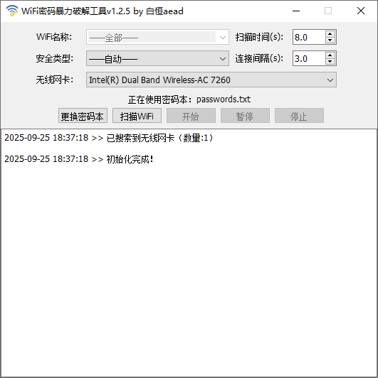 WiFi 密码暴力破解工具 V1.2.5 by 白恒aead